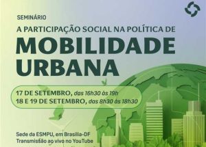 A programação terá palestra inaugural e oito painéis, sendo quatro no segundo dia e quatro no terceiro dia do evento. Serão debatidos temas como: “Arcabouço normativo e político-institucional da mobilidade”, “Participação social na formulação, execução e controle da política de mobilidade”, “Mobilidade ativa: a pé e por bicicleta” e “Financiamento e sustentabilidade econômica da mobilidade”.
